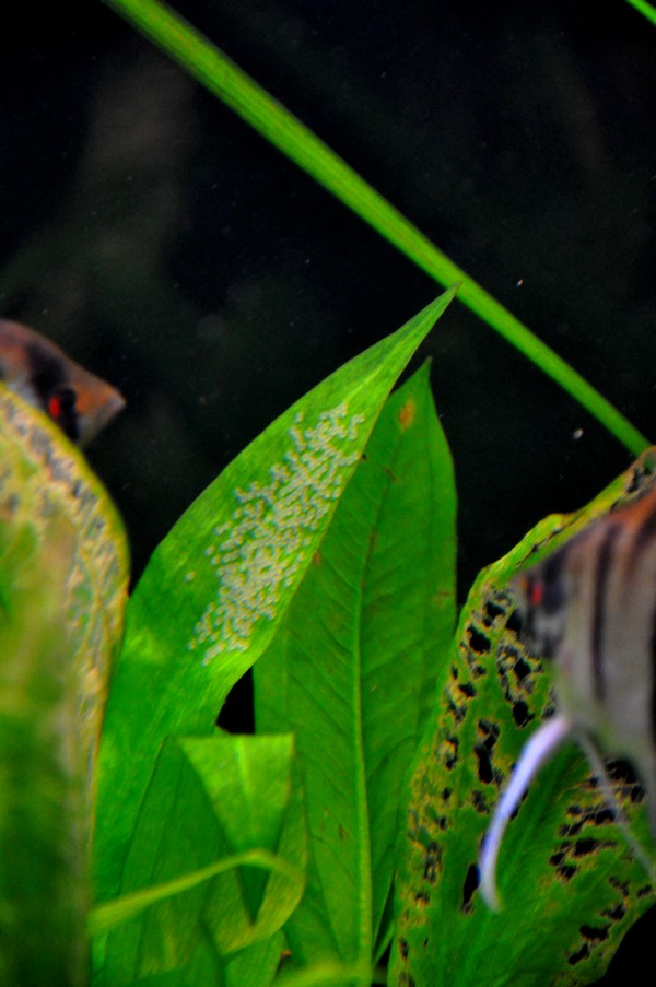 Chciałem urwać liść z ikrą i wsadzić go do inkubatora w postaci pływającej butelki z podkolanówką na dnie, ale moje Skalary jak na złość przestały składać ikrę na Żabienicy i wybrały rurę od filtra.