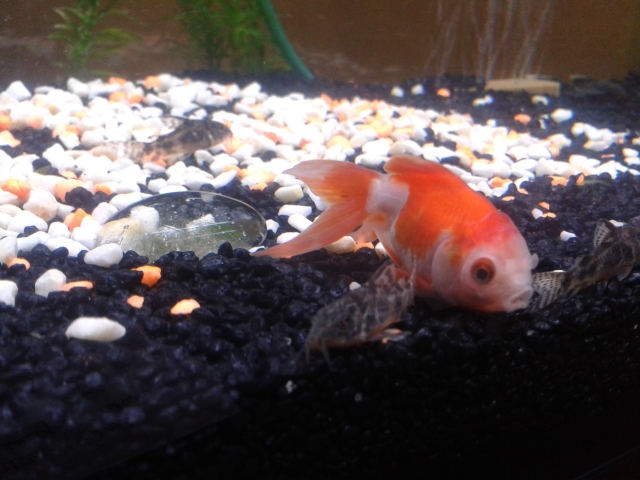 Rybkę karmię najczęściej: Tetra Goldfish Colour Sticks i Tetra Goldfish Pro, czasem urozmaicam dietę: Tetra Min, Tropical pokarm roślinny Bio-vit a dla kirysków pokarm Tropical-kirysek. Teraz dokupiłam kilka nowych pokarmów dla welonki np Tropical Tubivit.