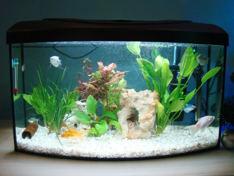 Jak zdejmę pokrywę ze śwaitłem i postawię ją z tyłu(tak, że światło świeci na akwariun), to rybka wypływa i zachowuje się w miarę normalnie.