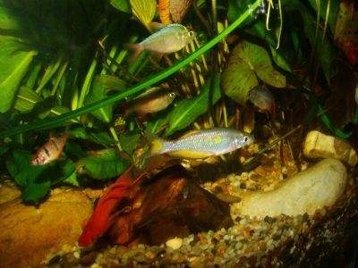 Jak zwykle pytam się o nazwę rybki. Tym razem jest to tęczanka, prawdopodobnie samica. Może wie ktoś coś o tej rybce? Zdjęcia kiepskie, ale wiadomo jak robi się fotki naszych podopiecznych