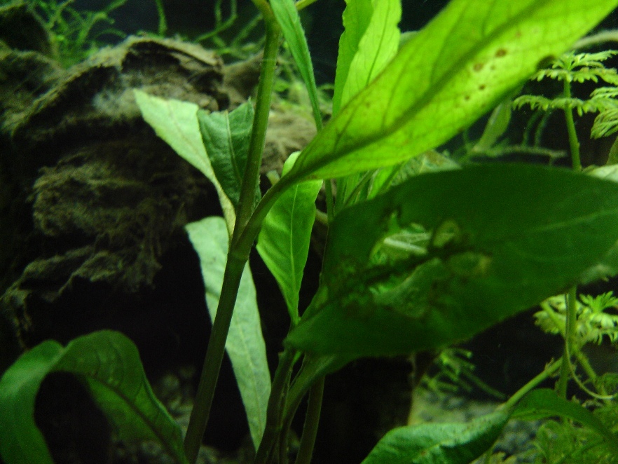 Jesteś pewien? Na tym liściu nic nie ma. Chociaż możliwe ona się rzeczywiście tak "inaczej" zachowuje. Kiedyś czytałam o razborach i tam były podane sposoby jak się rozmnaża te ryby i określone warunki jakie trzeba wtedy stworzyć, ale nie powiedziałabym ze one maja takie u mnie.